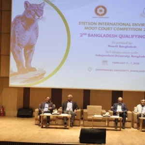 স্টেটসন আন্তর্জাতিক পরিবেশ-বিষয়ক মুট কোর্ট প্রতিযোগিতা ২০২৫–২৬-এর ২য় বাংলাদেশ কোয়ালিফাইং রাউন্ডের উদ্বোধনী অনুষ্ঠান অনুষ্ঠিত হয়েছে। বৃহস্পতিবার (৫ ফেব্রুয়ারি) ইন্ডিপেন্ডেন্ট ইউনিভার্সিটি, বাংলাদেশ (আইইউবি)-এর ক্যাম্পাসে অনুষ্ঠানে প্রধান অতিথি হিসেবে উপস্থিত ছিলেন বাংলাদেশের সাবেক প্রধান বিচারপতি মিস্টার জাস্টিস ড. সৈয়দ রেফাত আহমেদ। বিশেষ অতিথি হিসেবে উপস্থিত ছিলেন মিস্টার দিদার এ... বিস্তারিত
