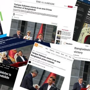 গণঅভ্যুত্থানে শেখ হাসিনা-এর নেতৃত্বাধীন বাংলাদেশ আওয়ামী লীগ সরকারের পতনের প্রায় ১৮ মাস পর গত ১২ ফেব্রুয়ারি অনুষ্ঠিত হয় জাতীয় সংসদ নির্বাচন। এতে নিরঙ্কুশ জয় পায় তারেক রহমান-এর নেতৃত্বাধীন বাংলাদেশ জাতীয়তাবাদী দল (বিএনপি)। মঙ্গলবার (১৭ ফেব্রুয়ারি) প্রধানমন্ত্রী হিসেবে শপথ নেন তারেক রহমান ও তার মন্ত্রিসভার সদস্যরা। তার শপথগ্রহণের খবর গুরুত্ব দিয়ে প্রকাশ করেছে বিভিন্ন আন্তর্জাতিক গণমাধ্যম।... বিস্তারিত