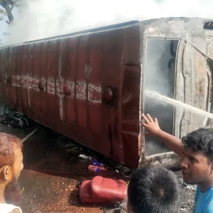কুমিল্লায় বাস–সিএনজি–মোটরসাইকেল সংঘর্ষে বাসে আগুন, ঘটনাস্থলেই নিহত ৪