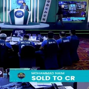 ১ কোটি ১০ লাখ টাকায় নাইমকে দলে ভিড়িয়েছে চট্টগ্রাম রয়্যালস। এ ক্যাটাগরির নাঈমের জন্য নিলামে আগ্রহ প্রকাশ করেছে সিলেট, রংপুর ও নোয়াখালী। তিন... বিস্তারিত