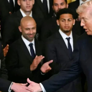 হোয়াইট হাউসের ওভাল অফিসে এমএলএস চ্যাম্পিয়ন ইন্টার মায়ামি দলকে সংবর্ধনা দিয়েছেন মার্কিন প্রেসিডেন্ট ডোনাল্ড ট্রাম্প। বৃহস্পতিবার আয়োজিত এই বিশেষ অনুষ্ঠানে আকর্ষণের কেন্দ্রবিন্দুতে ছিলেন আর্জেন্টাইন মহাতারকা লিওনেল মেসি।