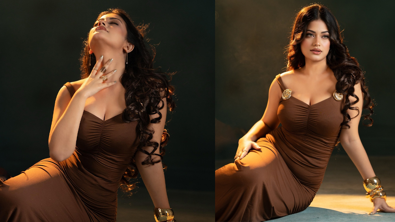 ঢালিউডে ফের আলোচনার কেন্দ্রবিন্দুতে মন্দিরা চক্রবর্তী। গিয়াস উদ্দিন সেলিমের ‘কাজল রেখা’ দিয়ে রুপালি পর্দায় আত্মপ্রকাশ করেন এই সুন্দরী। এরপর আরিফিন শুভর সঙ্গী হয়ে ‘নীলচক্র’-তে সাড়া ফেলে এখন যেন প্রতিটি উপস্থিতিতেই তিনি মাতিয়ে রাখেন তার অনুরাগীদের। সম্প্রতি সোশ্যাল মিডিয়ায় নিজের একঝাঁক গ্ল্যামারাস ছবি প্রকাশ করে আবারও প্রমাণ করলেন, সময়টা বয়ে যাচ্ছে মন্দিরামুখর হয়ে। মুহূর্তেই ভাইরাল হওয়া সেই লুক নিয়ে ইতোমধ্যে ঢালিউডে শুরু হয়েছে নতুন আলোচনা। শনিবার (০৬ ডিসেম্বর) রাতে একগুচ্ছ ছবি নিজের সোশ্যাল হ্যান্ডেল ইনস্টাগ্রামে প্রকাশ করেছেন মন্দিরা। ছবিগুলোতে তার গ্ল্যামারাস লুক নজর কেড়েছে নেটিজেনদের। প্রকাশিত সেসব ছবিতে দেখা যায়, মন্দিরা পরেছেন চকলেট বা গাঢ় বাদামি রঙের একটি বডিকন গাউন। স্লিভলেস এই পোশাকটিতে রয়েছে সোনালী স্ট্র্যাপ এবং বুক ও কোমরের অংশে কার্ভি ফিটিং, যা তাকে দারুণভাবে ফুটিয়ে তুলেছে; উঠে এসেছে সাহসী লুক। প্রতিটি পোজেই এক আবেদনময়ী অভিব্যক্তি ছিল তার। এ ছাড়া হালকা অলঙ্কার- হাতে বড় মেটালের বালা ও আঙুলে বাহারি আংটি; সঙ্গে খোলা ঢেউ খেলানো চুল যেন রীতিমতো ছড়িয়ে দেয় তার রূপের সৌন্দর্যত