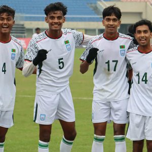 চীনের তঙ্গিয়াল লং স্টেডিয়ামে শনিবার দলের জয়ে জোড়া গোল করেন মোহাম্মদ মানিক। বাকি তিন গোলদাতা রিফাত, বায়েজিদ বোস্তামি ও আকাশ আহম্মেদ।