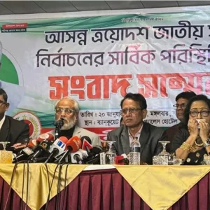 মঙ্গলবার (২০ জানুয়ারি) আসন্ন ত্রয়োদশ জাতীয় সংসদ নির্বাচনের সার্বিক পরিস্থিতি নিয়ে আয়োজিত এক সংবাদ সম্মেলনে তিনি এ তথ্য জানান।