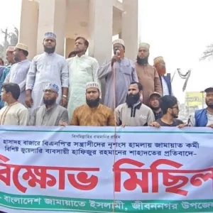 চুয়াডাঙ্গার জীবননগরে বিএনপি ও জামায়াতের সংঘর্ষে নিহত জামায়াত কর্মী হাফিজুর রহমান হত্যা মামলায় বিএনপির তিন নেতাকর্মীকে আটক করেছে পুলিশ। জীবননগর থানা পুলিশ, জেলা গোয়েন্দা শাখা (ডিবি) ও জেলা পুলিশের সাইবার ক্রাইম ইউনিট ১ মার্চ ও ২ মার্চ পৃথক অভিযানে তাঁদের আটক করে। আটক ব্যক্তিরা হলেন—হাসাদহ ইউনিয়ন স্বেচ্ছাসেবক দলের সভাপতি মেহেদী হাসান, তাঁর বাবা বিএনপির কর্মী জসিম উদ্দিন এবং হাসাদহ ইউনিয়ন বিএনপির... বিস্তারিত