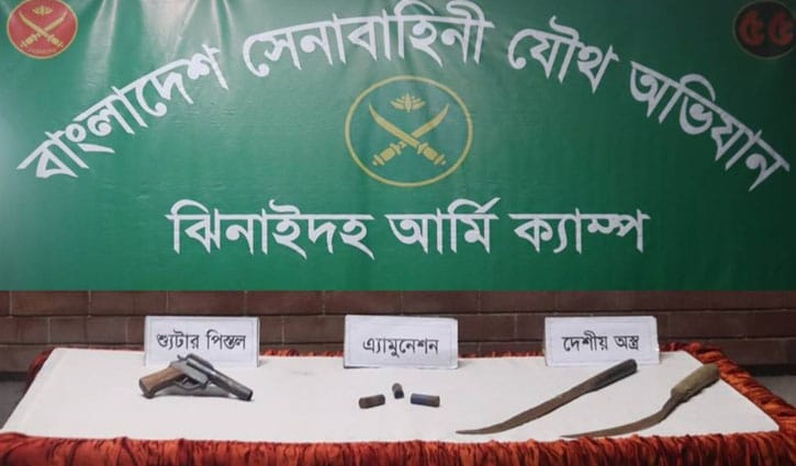 ঝিনাইদহে ‘মেইড ইন ইন্ডিয়া’ লেখা পিস্তল ও গুলি উদ্ধার