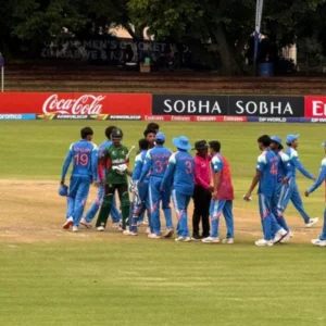 আইসিসি অনূর্ধ্ব-১৯ বিশ্বকাপে টসের সময় বাংলাদেশ ও ভারতের অধিনায়কের হাত না মেলানো নিয়ে বেশ আলোচনার সৃষ্টি হয়েছিল। তবে বিসিবি জানিয়েছে, এটি ছিল স্রেফ একটি 'অনিচ্ছাকৃত চ্যুতি'। ম্যাচ শেষে অবশ্য দুই দলের ক্রিকেটাররা স্বাভাবিকভাবেই করমর্দন করেছেন। জিম্বাবুয়ের বুলাওয়েতে শনিবার মুখোমুখি হয় দুই দল। ম্যাচটিতে ডিএলএস মেথডে ১৮ রানে জয় পেয়েছে ভারত। এই ম্যাচের টসের সময় উপস্থিত হতে পারেননি বাংলাদেশের নিয়মিত... বিস্তারিত