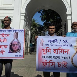 ক্ষমতাচ্যুত প্রধানমন্ত্রী শেখ হাসিনার বিরুদ্ধে মানবতাবিরোধী অপরাধের অভিযোগে করা মামলার রায় কিছুক্ষণের মধ্যেই ঘোষণা করা হবে। এ রায়কে কেন্দ্র করে ব্যানার-পোস্টার নিয়ে আন্তর্জাতিক অপরাধ ট্রাইব্যুনাল এলাকায় অবস্থান নিয়েছেন জুলাই অভ্যুত্থানের শহীদদের স্বজনরা।