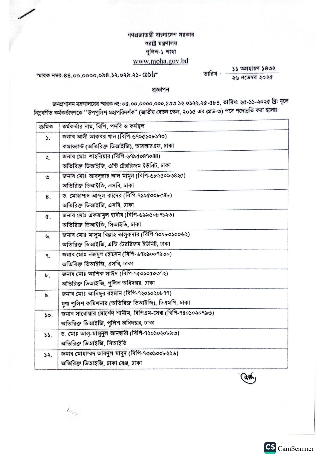 ডিআইজি পদে একযোগে ৩৩ জনের পদোন্নতি