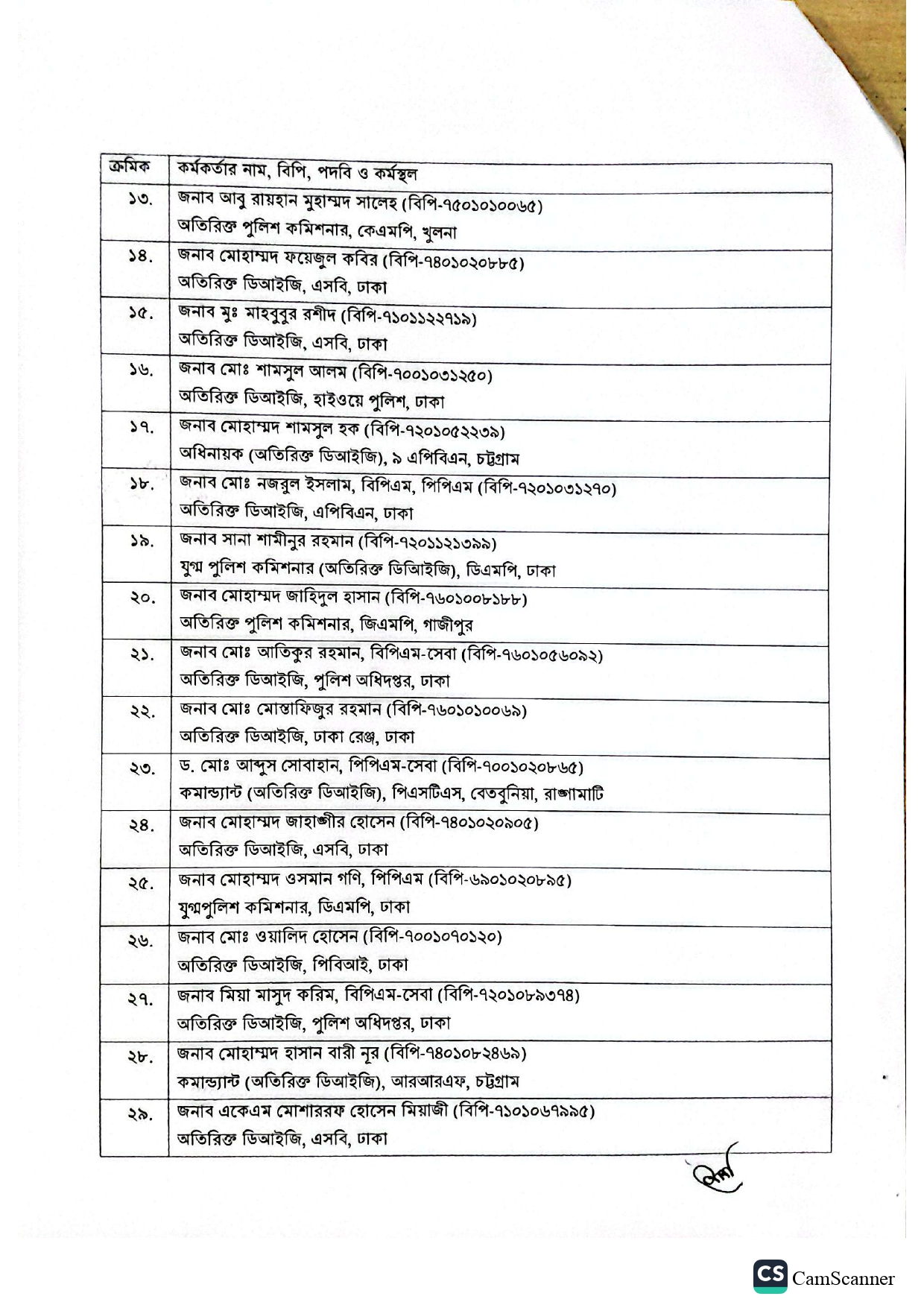 পদোন্নতি প্রাপ্ত ৩৩ কর্মকর্তারা হলেন: