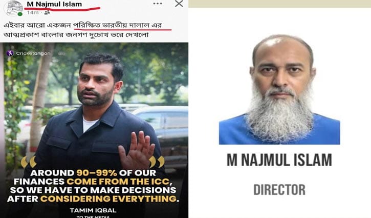 বাংলাদেশ ক্রিকেট বোর্ডের (বিসিবি) পরিচালক ও অর্থ কমিটির চেয়ারম্যান এম নাজমুল ইসলাম জাতীয় দলের সাবেক অধিনায়ক তামিম ইকবালকে ভারতীয় দালাল বলে ফেসবুকে পোস্ট করেছেন।