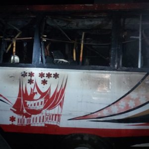 ধামরাইয়ে সড়কের পাশে দাঁড় করিয়ে রাখা বাসে আগুন
