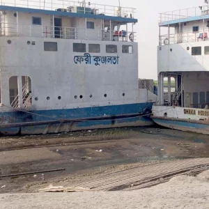 নাব্য সংকটে রৌমারী-চিলমারী নৌরুটে ফেরি চলাচল বন্ধ