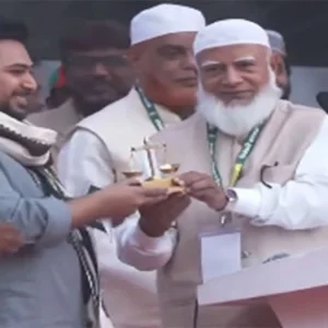 জাতীয় নাগরিক পার্টির (এনসিপি) আহ্বায়ক নাহিদ ইসলামের হাতে ১০ দলীয় জোটের ‘সমন্বিত প্রতীক’ হিসেবে দাঁড়িপাল্লা তুলে দিলেন জামায়াতে ইসলামীর আমির ডা. শফিকুর রহমান।