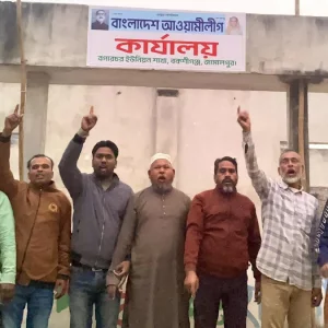 বকশীগঞ্জে আওয়ামী লীগ অফিসে জাতীয় ও দলীয় পতাকা উত্তোলন, ‘জয় বাংলা’ স্লোগান