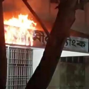 বগুড়ায় মোটরসাইকেলে এসে গ্রামীণ ব্যাংকের ফটকে আগুন দিলো দুই ব্যক্তি
