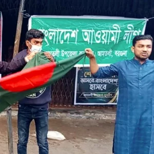 বরগুনার আমতলীতে আওয়ামী লীগ কার্যালয়ে ব্যানার-পতাকা উত্তোলন