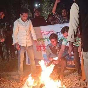 বাকৃবিতে বিসিএসের প্রবেশপত্র পুড়িয়ে রেল অবরোধ