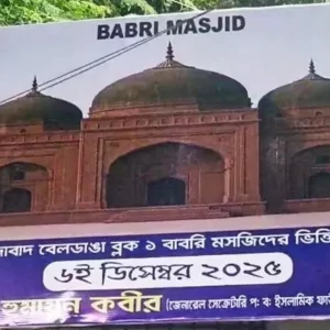 ভারতের উত্তর প্রদেশের অযোধ্যায় বাবরি মসজিদ ধ্বংসের ৩৩ বছর পশ্চিমবঙ্গের মুর্শিদাবাদ জেলায় আজ বাবরি মসজিদের ভিত্তিপ্রস্তর স্থাপন করবেন তৃণমূল কংগ্রেস থেকে বহিষ্কৃত নেতা বিধায়ক হুমায়ূন কবীর। হিন্দুস্তান টাইমসের প্রতিবেদন অনুযায়ী, শনিবার (৬ ডিসেম্বর) স্থানীয় সময় দুপুর ১২টায় ভিত্তিপ্রস্তর স্থাপনের এ অনুষ্ঠান শুরু হওয়ার কথা রয়েছে।  এদিকে এ ঘটনাকে কেন্দ্র করে মুর্শিদাবাদে যেন কোনোভাবেই... বিস্তারিত