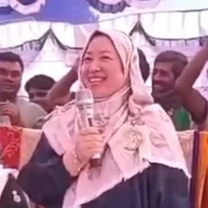 বিএনপি প্রার্থী স্বামীর জন্য ভোট চাইলেন চীনা স্ত্রী