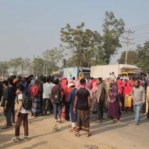 বিকাশে পরিশোধ হওয়া বেতন তুলতে না পেরে মহাসড়ক অবরোধ