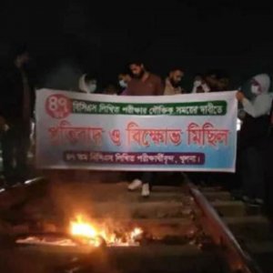 বিসিএস পরীক্ষা পেছানোর দাবিতে খুলনায় ৬ ঘণ্টা রেলপথ অবরোধ