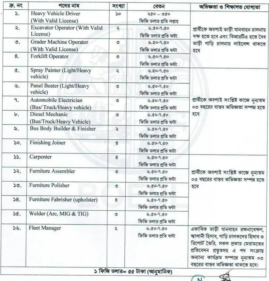 বোয়েসেলের মাধ্যমে ৫৪ কর্মী নেবে ফিজি, আবেদন ফি ১০০ টাকা