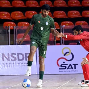 থাইল্যান্ডের ব্যাংককে চলছে নারী ও পুরুষ সাফ ফুটসাল চ্যাম্পিয়নশিপ। পুরুষ বিভাগে নিজেদের প্রথম ম্যাচে ভারতের সঙ্গে ৪-৪ গোলে ড্র করেছিল বাংলাদেশ। তবে নিজেদের দ্বিতীয় ম্যাচেই বড় হারের তেঁতো স্বাদ পেয়েছে লাল-সবুজের প্রতিনিধিরা। মালদ্বীপের কাছে ৬-১ গোলের বড় ব্যবধানে হেরেছে রাহবার খানের দল।
