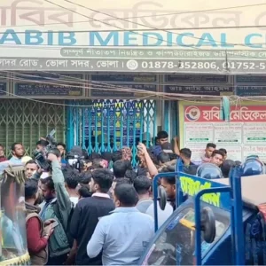 ভোলায় ক্লিনিকে প্রসূতির মৃত্যু, ভুল চিকিৎসার অভিযোগে স্বজনদের হামলা-ভাঙচুর