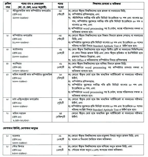 বাংলাদেশ সচিবালয়ের মন্ত্রিপরিষদ বিভাগ এবং এর অধীনে তোশাখানা ইউনিট, তোশাখানা জাদুঘরে ১৮টি পদে ৭৫ জনকে নিয়োগের বিজ্ঞপ্তি প্রকাশ করেছে। আবেদন শুরু হবে ২৯ এপ্রিল ২০২৬ তারিখ সকাল ১০টায়, চলবে ২৮ মে বিকেল ৫টা পর্যন্ত। আগ্রহী প্রার্থীরা নির্ধারিত সময়সীমার মধ্যে আবেদন করতে পারবেন। এসএসসি পাসের চাকরি প্রার্থীরাও আবেদনের সুযোগ পাবেন।