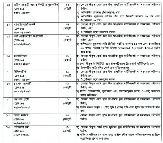 - বয়স: ১ এপ্রিল ২০২৬ তারিখ ১৮-৩২ বছর। তবে ১ ও ৫ নং পদের ক্ষেত্রে বিভাগীয় প্রার্থীদের জন্য ৪০ বছর বয়স পর্যন্ত শিথিলযোগ্য। বয়স প্রমাণের ক্ষেত্রে কোনো প্রকার এফিডেভিট গ্রহনযোগ্য হবে না।