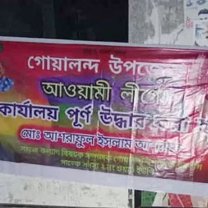 রাজবাড়ীর গোয়ালন্দে আওয়ামী লীগ কার্যালয় ‘পুনরুদ্ধারের ব্যানার’