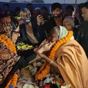 ব্রাহ্মণবাড়িয়া-২ (সরাইল–আশুগঞ্জ–বিজয়নগরের দুই ইউনিয়ন) আসনের স্বতন্ত্র প্রার্থী ব্যারিস্টার রুমিন ফারহানাকে মালা পরাতে এসে এক বৃদ্ধা অর্থ উপহার দিয়েছেন। বৃহস্পতিবার (৮ জানুয়ারি) সন্ধ্যায় সরাইল উপজেলার ধাউরিয়া গ্রামে স্থানীয়দের সঙ্গে মতবিনিময় সভাকালে এ ঘটনাটি সবার দৃষ্টি আকর্ষণ করে। অনুষ্ঠানে গাঁদা ফুলের মালা পরিয়ে দেওয়ার পর রুমিন ফারহানার হাতে এক হাজার টাকার একটি নোট তার হাতে গুঁজে... বিস্তারিত