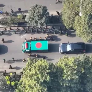 সাবেক প্রধানমন্ত্রী ও বিএনপি চেয়ারপারসন বেগম খালেদা জিয়ার মরদেহ কঠোর নিরাপত্তার মধ্য দিয়ে জাতীয় সংসদ ভবনের দক্ষিণ প্লাজায় পৌঁছেছে। তাকে বহন করা হয়েছে লাল-সবুজ রঙের জাতীয় পতাকায় মোড়ানো একটি ফ্রিজার ভ্যানে। সেনাবাহিনী হিউম্যান চেইন তৈরি করে রাষ্ট্রীয় প্রোটকলে তার মরদেহ আনা হয়।