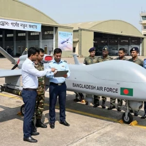 সামরিক ড্রোন বা ‘মনুষ্যবিহীন আকাশযান (ইউএভি)’ তৈরির যুগে পদার্পণ করল বাংলাদেশ। মঙ্গলবার (২৭ জানুয়ারি) এ উপলক্ষে বাংলাদেশ বিমান বাহিনী এবং চায়না ইলেকট্রনিক্স টেকনোলজি গ্রুপ করপোরেশন (সিইটিসি) ইন্টারন্যাশনালের মধ্যে একটি চুক্তি সই হয়েছে। আন্তঃবাহিনী জনসংযোগ পরিদপ্তর (আইএসপিআর) এক সংবাদ বিজ্ঞপ্তিতে জানিয়েছে, ‘মনুষ্যবিহীন আকাশযান (ইউএভি)’ উৎপাদন ও সংযোজন কারখানা স্থাপন এবং প্রযুক্তি হস্তান্তর... বিস্তারিত