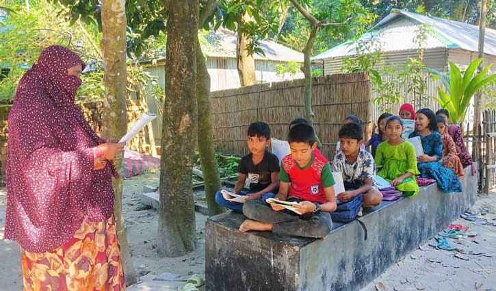 স্কুলে যাওয়ার পথ বন্ধ, গাছতলায় পাঠদান