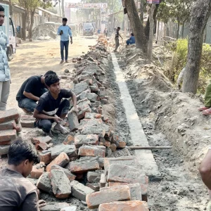 ১৪ কোটি টাকার সড়ক নির্মাণে অনিয়ম, ইট ফেলে দিয়ে স্থানীয়দের প্রতিবাদ