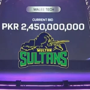 রেকর্ড দামে বিক্রির মাধ্যমে পাকিস্তান সুপার লিগের (পিএসএল) মুলতান সুলতানস ফ্র্যাঞ্চাইজির নিলাম শেষ হয়েছে, যার বার্ষিক ফ্র্যাঞ্চাইজি ফি ২৪৫ কোটি পাকিস্তানি রুপি (পিকেআর ২.৪৫ বিলিয়ন)। পাকিস্তান সুপার লিগের ইতিহাসে এটিই সর্বোচ্চ মূল্যায়ন। সোমবার (৯ ফেব্রুয়ারি) পাকিস্তানের লাহোরে অনুষ্ঠিত হয় নিলাম।