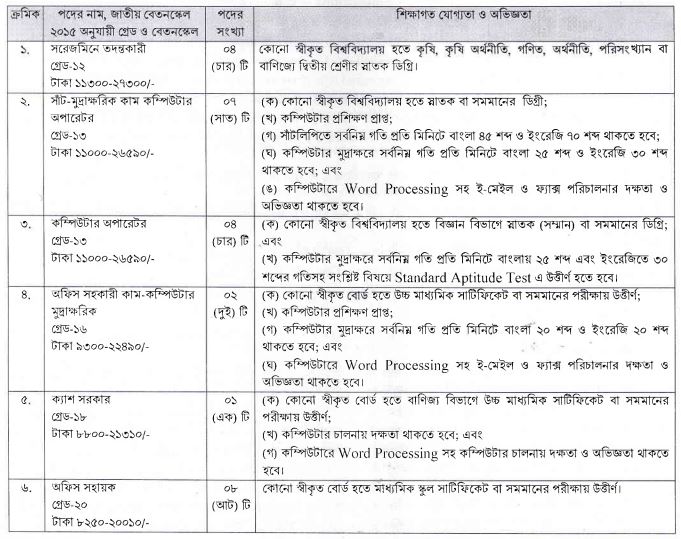 কৃষি মন্ত্রণালয়ের রাজস্ব খাতভুক্ত ৬টি পদে ২৬ জনকে নিয়োগ দেওয়া হবে। আগ্রহীরা আগামী ২৮ ডিসেম্বর বিকেল ৫টা পর্যন্ত অনলাইনের মাধ্যমে আবেদন করতে পারবেন। অনলাইন ব্যতিত অন্য কোনো মাধ্যমে আবেদন গ্রহণযোগ্য হবে না। এসএসসি পাসের প্রার্থীরাও আবেদনের সুযোগ পাবেন।