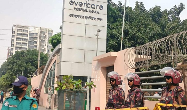 বিএনপির চেয়ারপারসন ও সাবেক প্রধানমন্ত্রী খালেদা জিয়ার নিরাপত্তায় এভারকেয়ার হাসপাতালের সামনে বিজিবি, এপিবিএনসহ অতিরিক্ত আইনশৃঙ্খলা বাহিনীর সদস্য মোতায়েন করা হয়েছে।