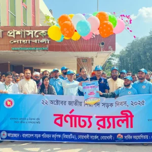 ‘মানসম্মত হেলমেট ও নিরাপদ গতি, কমবে জীবন ও সম্পদের ক্ষতি’ এই প্রতিপাদ্যকে সামনে রেখে নোয়াখালীতে নানা কর্মসূচির মধ্য দিয়ে জাতীয় নিরাপদ সড়ক দিবস-২০২৫ উদযাপন করা হয়েছে। বুধবার (২২ অক্টোবর) সকালে জেলা প্রশাসনের সহযোগিতায় বাংলাদেশ সড়ক পরিবহন কর্তৃপক্ষ (বিআরটিএ) দিনব্যাপী এ অনুষ্ঠানের আয়োজন করে।