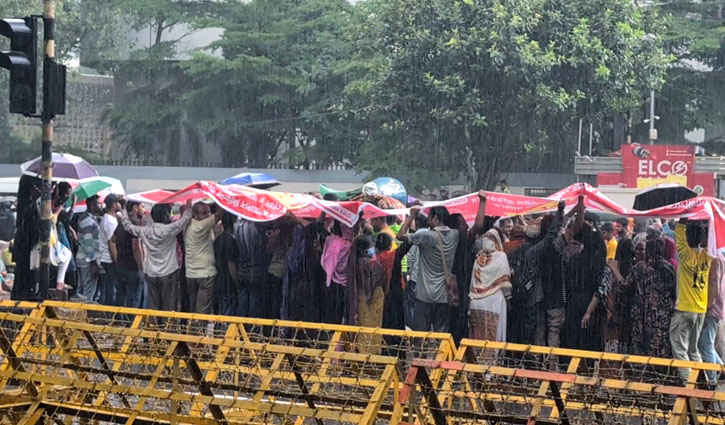 বৃষ্টি মাথায় কাকরাইলে তিন কারাখানার শ্রমিকদের অবস্থান