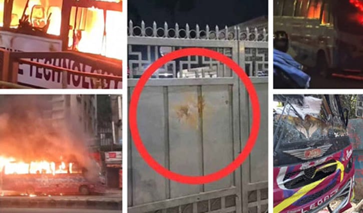 রাজধানীর বিভিন্ন স্থানে ককটেল বিস্ফোরণ ও বাসে আগুন