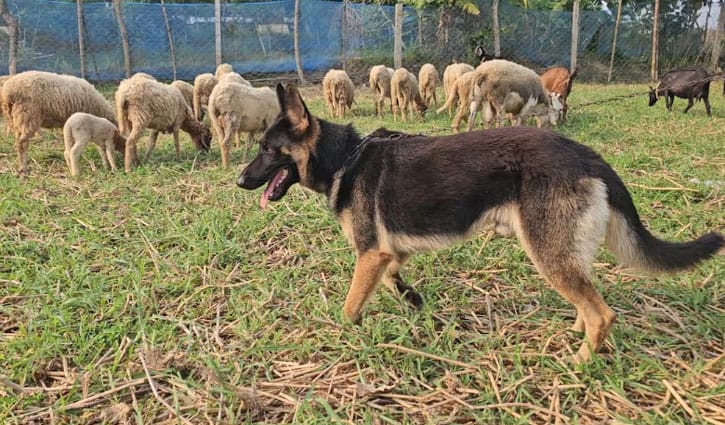 শরীয়তপুরে ভেড়া-ছাগলের খামারে পাহারাদার জার্মান শেফার্ড!