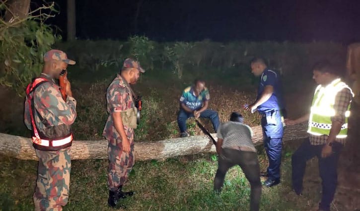 সড়কে গাছ ফেলে ডাকাতি রুখে দিল বিজিবি-পুলিশ